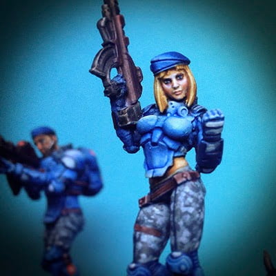 В примере — недавно вышедшие миниатюры PanOceania: Akalis и Nisse из нового стартера PanO и лимитный Neoterra Bolt.