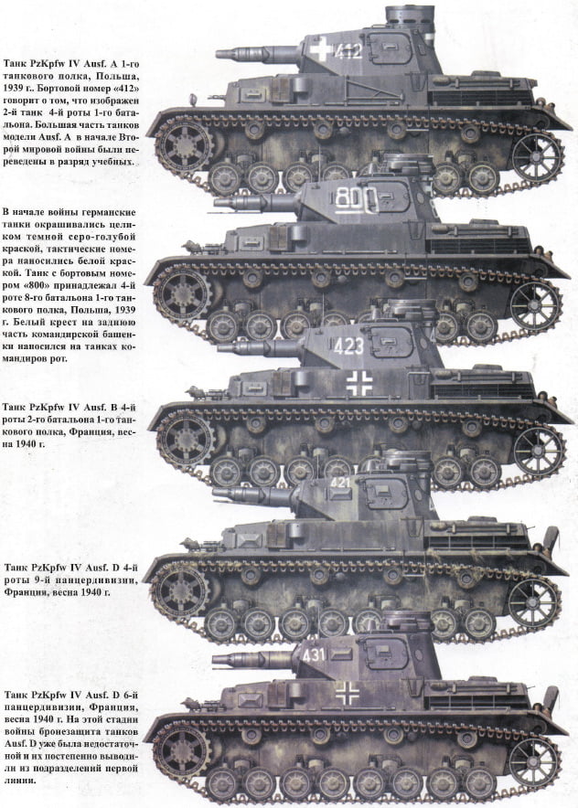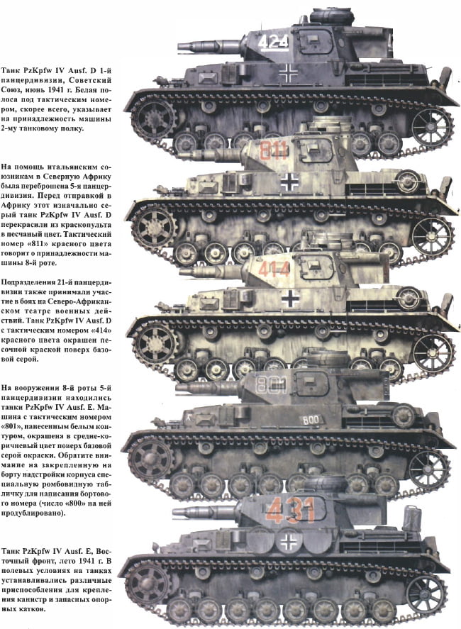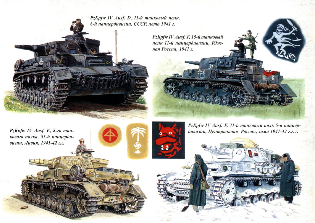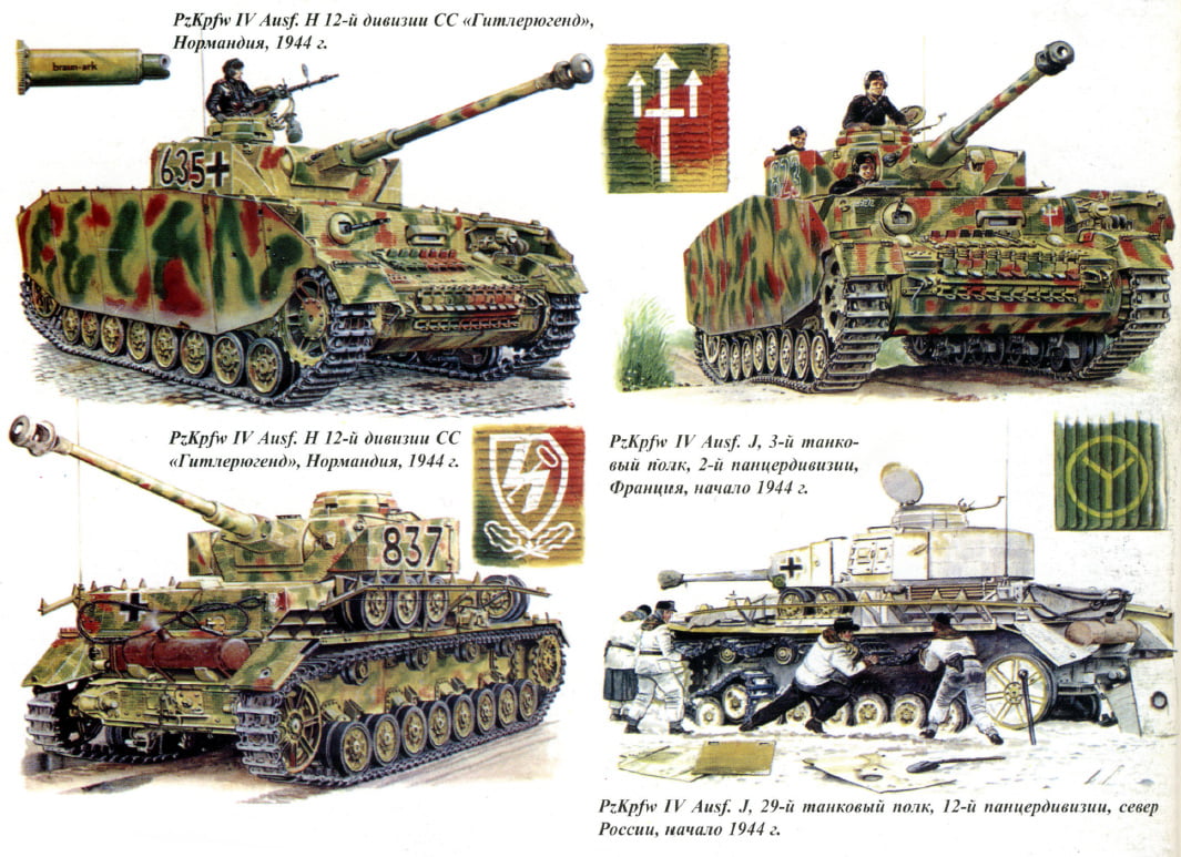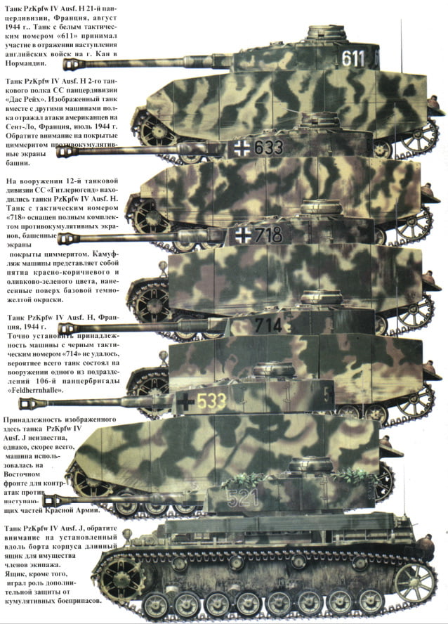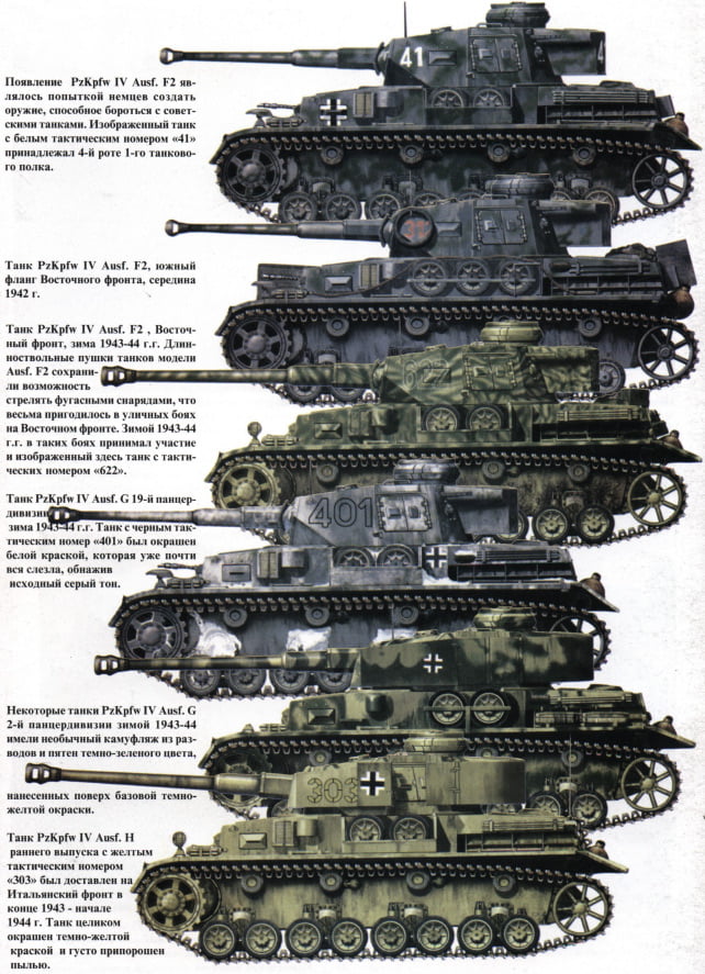 Подборка изображений камуфляжа танка «Panzer IV» (PzKpfw IV, Panzerkampfwagen IV) в соответствии с разными периодами войны. Фото и рисунки собраны из разных книг, для личного референса при моделировании.